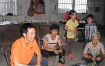 我被分到了第三組,也是這次家訪去的最遠的地方。和董啟凡,楊愫愫等隊員一起需要走過崎嶇不平的山路,爬上一座一千多米的高山。有的隊員穿的是短褲,當?shù)厣缴嫌幸环N草是有著尖利的刺,劃傷了隊員的腿,這提醒了我們出去家訪一定要穿長褲。一個半小時后,他們到了第一位學生陸純的家里。陸純的家由于在建新房,全家人在簡易帳篷里生活,條件十分簡陋。志愿者受到了陸純家長的歡迎,陸純的班主任沙士博也跟家長溝通了陸純在學校的表現(xiàn)和情況。陸純是一個比較聰明的孩子,數(shù)學成績比較好,但平時比較貪玩,上課的時候不愿意舉手發(fā)言。班主任把這些情況反映給家長后,陸純的媽媽表示以后一定多多抽時間來多關(guān)心孩子的學習和生活。最后隊員董啟凡幫一家人拍了一張全家福...[詳細]>>>