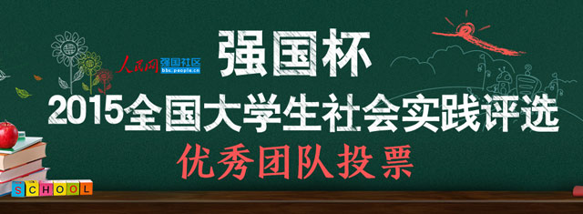 為勉勵廣大青年認真學(xué)習(xí)習(xí)近平總書記關(guān)于弘揚真善美、傳播正能量的講話精神,引導(dǎo)大學(xué)生積極參與社會實踐,在志愿服務(wù)過程中獲得鍛煉與成長,在共青團中央學(xué)校部、人民日報社政文部指導(dǎo)下,人民網(wǎng)以強國論壇為平臺舉辦“強國杯”2015全國大學(xué)生社會實踐評選活動。活動吸引了各大院校和廣大學(xué)生的熱情參與,共有500多所院校的數(shù)千個團隊報名,組委會從中選出200個團隊正式入圍并展開網(wǎng)絡(luò)投票。