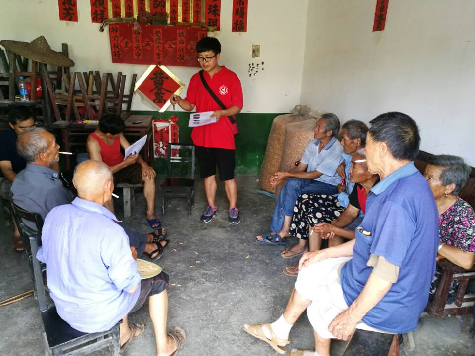 部分大學生深入偏遠地區(qū)開展知識普及宣講活動。圖為長安大學交通運輸專業(yè)學生在革命老區(qū)遵義向村民宣傳交通安全知識。來源:團隊提供