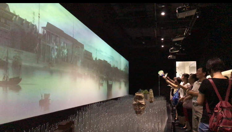 三維影片《千年羊城》,讓觀眾在不到10分鐘內(nèi),速覽城建史上的重要事件,跨越千年印記,感受廣州前世今生;“廣州港與廣州府城圖”數(shù)字化動(dòng)態(tài)長(zhǎng)卷,再現(xiàn)19世紀(jì)珠江兩岸的繁華盛景,堪稱廣州版“清明上河圖”;45×56米的全域沙盤,讓你在山脈、水脈之中,縱覽7434平方公里的廣州,配合全新打造的城市規(guī)劃宣傳片,零距離感受廣州城市格局和未來(lái)發(fā)展藍(lán)圖……