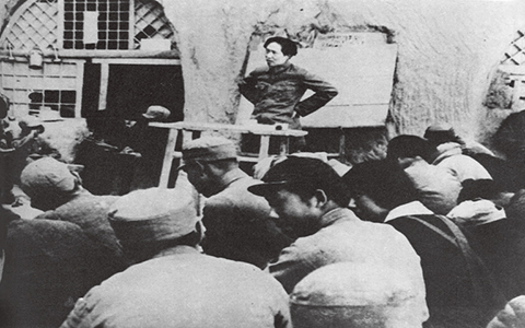 毛澤東非常重視理論聯(lián)系實(shí)際這一馬克思主義學(xué)風(fēng)的養(yǎng)成,強(qiáng)調(diào)必須始終堅(jiān)持把馬克思主義與中國實(shí)際緊密結(jié)合起來。圖為毛澤東在為陜北公學(xué)學(xué)員講課。