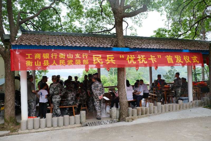 前不久,衡山縣人武部與中國工商銀行衡山支行舉行民兵“優(yōu)撫卡”首發(fā)儀式,給正在參加防汛演練的30余名基干民兵送去了一份特別的小禮物——“隨軍行擁軍優(yōu)撫卡”。 這張卡,是今年年初該縣人武部主動與銀行進行溝通協(xié)調后,專門設計制作的一張融身份識別功能與金融服務功能于一體的民兵優(yōu)撫卡?ǖ恼姹尘皥D案是一位身著軍裝的民兵照片,并印有“隨軍行擁軍優(yōu)撫卡”字樣。