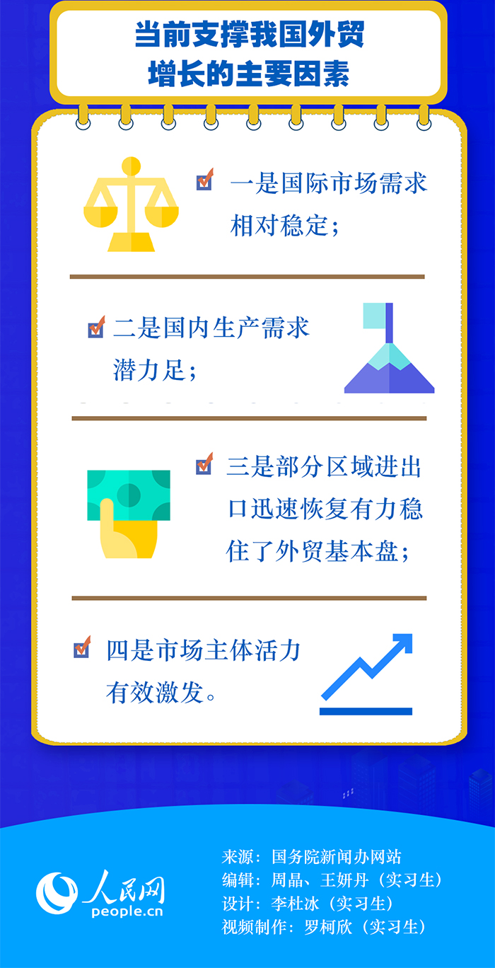 商務(wù)部原副部長魏建國在接受人民網(wǎng)“強觀察”欄目記者采訪時表示,上半年的外貿(mào)增長主要有三方面原因:首先,高效統(tǒng)籌疫情防控和經(jīng)濟社會發(fā)展取得實效。其次,多措并舉穩(wěn)市場主體。隨著國家穩(wěn)經(jīng)濟一攬子政策措施的落地見效,外貿(mào)保穩(wěn)提質(zhì)等各項工作加快推進,我國外貿(mào)市場主體活力有效激發(fā)。此外,以國內(nèi)大循環(huán)為主體、國內(nèi)國際雙循環(huán)相互促進的新發(fā)展格局的作用正在發(fā)揮出來。