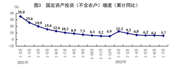 看投資。1-7月份,全國固定資產(chǎn)投資(不含農(nóng)戶)319812億元,同比增長5.7%,比1-6月份回落0.4個(gè)百分點(diǎn)。